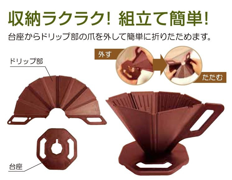 ●台座からドリップ部の爪を外して簡単に折りたためます。