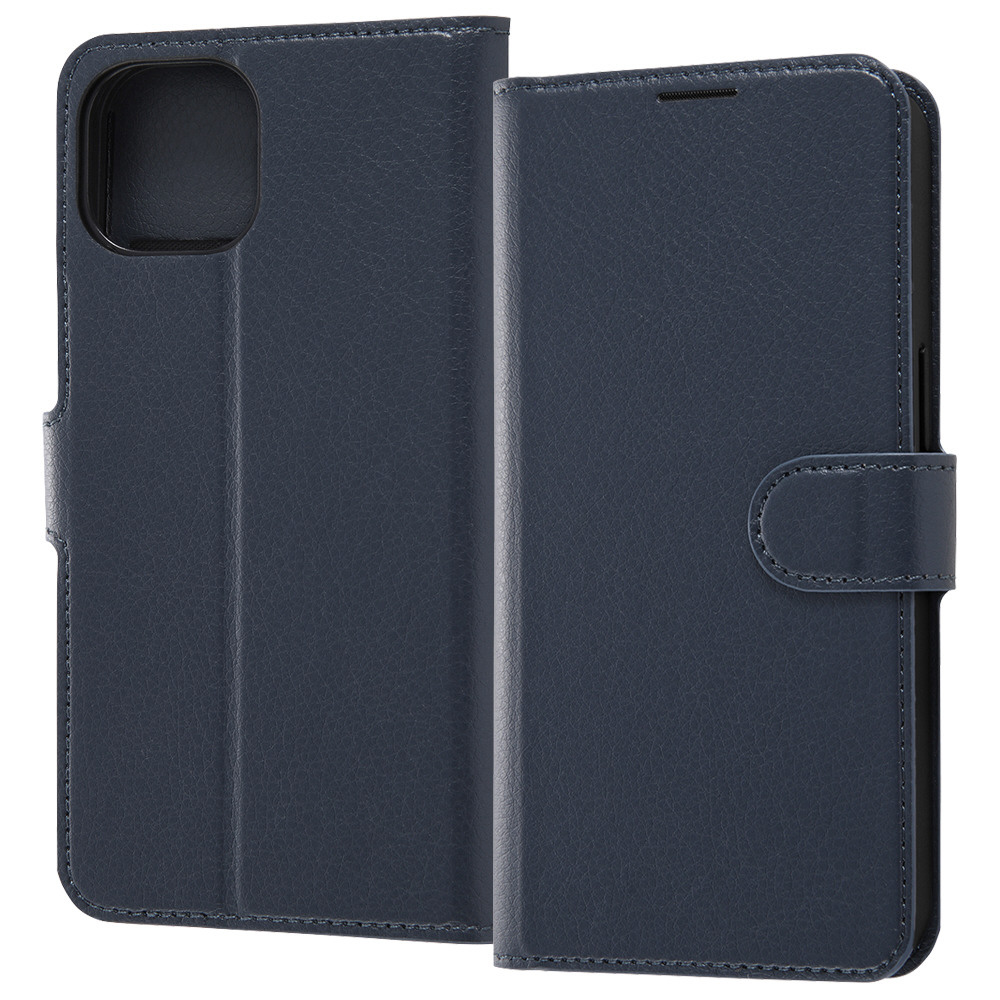 iPhone 13 対応 6.1inch 2眼 耐衝撃 手帳型ケース シンプル マグネット ダークネイビー 【864】