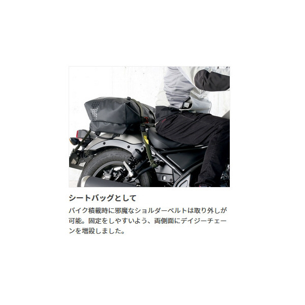 フックポイントの増設や着脱式ショルダーベルトの採用、基本形状の見直しによって、バイクユースでの機能性を大幅に強化。