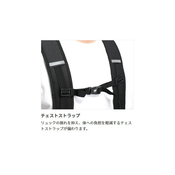 バイク積載時に邪魔なショルダーベルトは取り外しが可能。固定をしやすいよう、両側面にデイジーチェーンを増設しました。