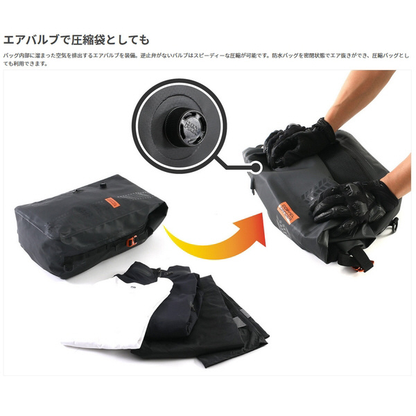 防水バッグを密閉状態でエア抜きができ、圧縮バッグとしても利用できます。