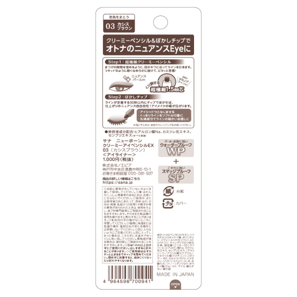 こだわりの処方で極上のなめらかな描き心地を実現し た1.5mmの極細のクリーミーペンシルと、アイメイクの幅が広がるぼかしチップが一体化。