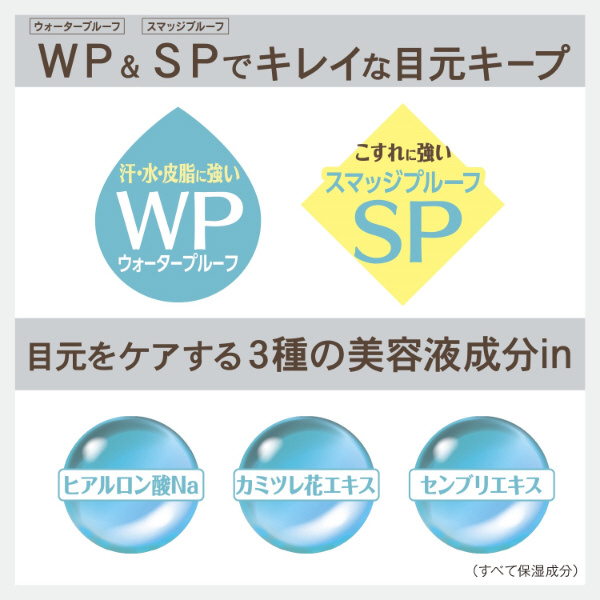 3.キレイな目元が続く: 汗・水・皮脂に強いウォータープルーフ&こすれに強いスマッジプルーフ
