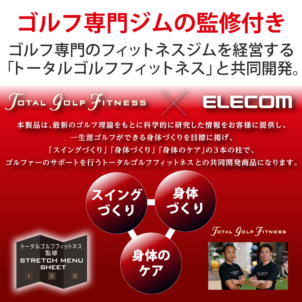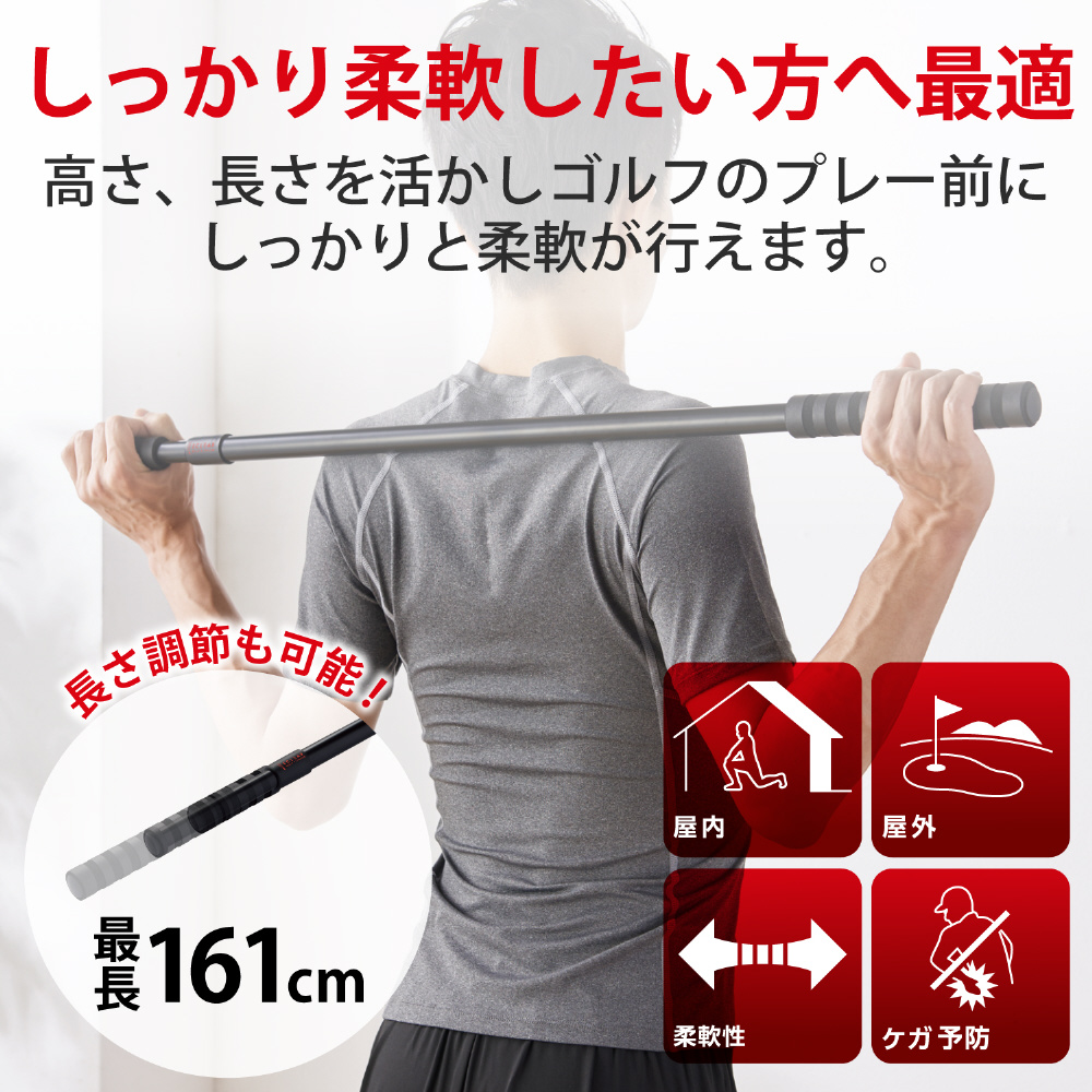 ケガ予防と動ける体の準備を行うプログラムとウォーミングアップポールです。プロゴルファーのトレーナーも務めるトータルゴルフフィットネスと共同開発した製品で、高さ、長さを活かしプレー前にしっかりと柔軟が行えます。