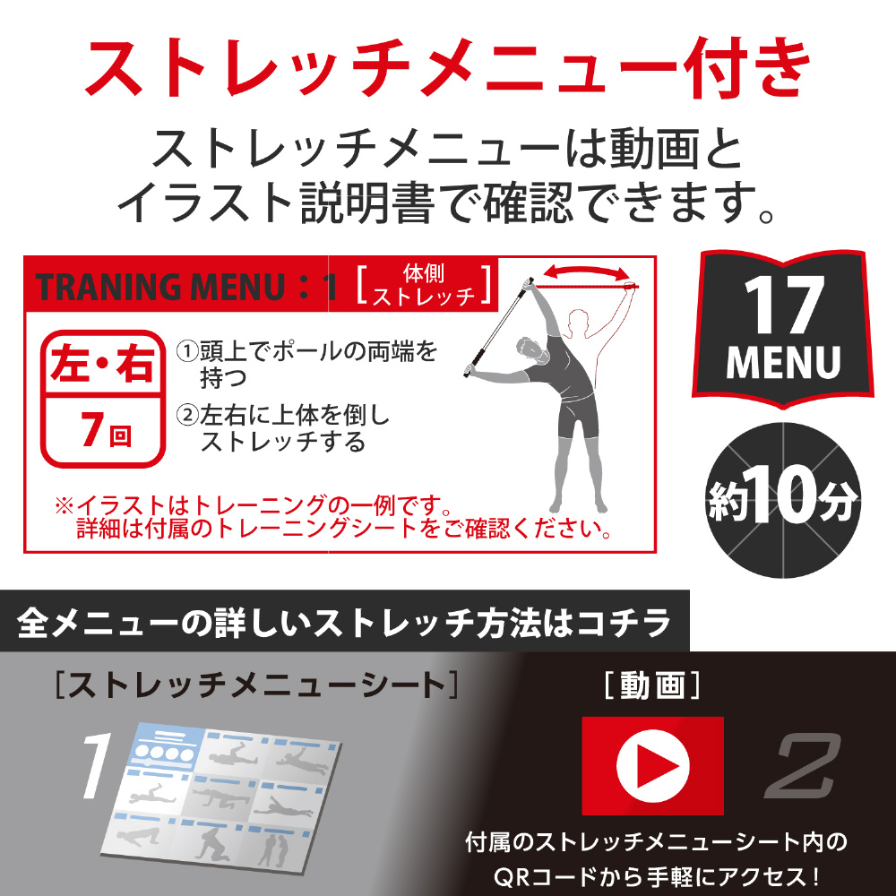 ■ストレッチメニュー詳細は動画とイラスト説明書で確認できます。