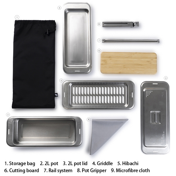 Wolf&Grizzly ウルフアンドグリズリー クックセットはグリル M1 エディション with ファイヤーセットで使う事ができる皿、まな板、複数のグリル、汁用クッカーがセットになったクッキングキットです。