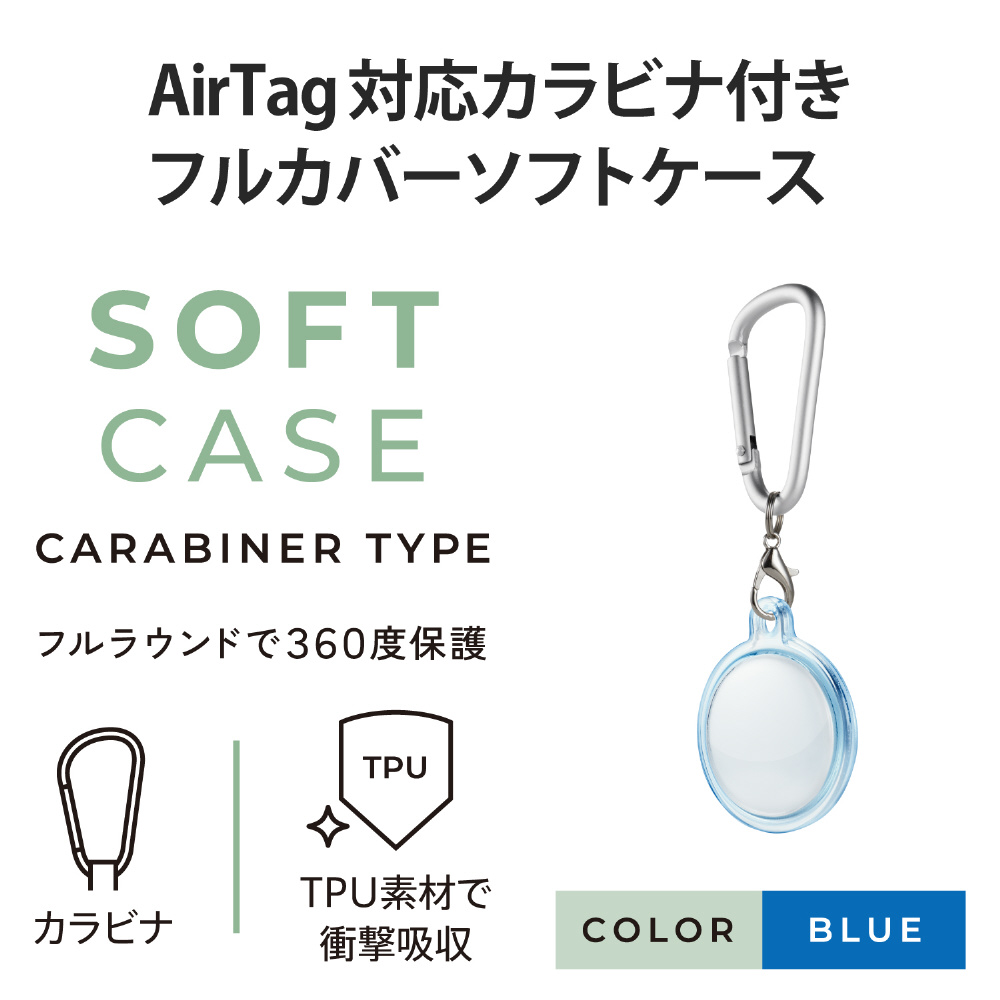 AirTag用アクセサリ/カラナビ付ソフトケース ブルー AT-UCKBU