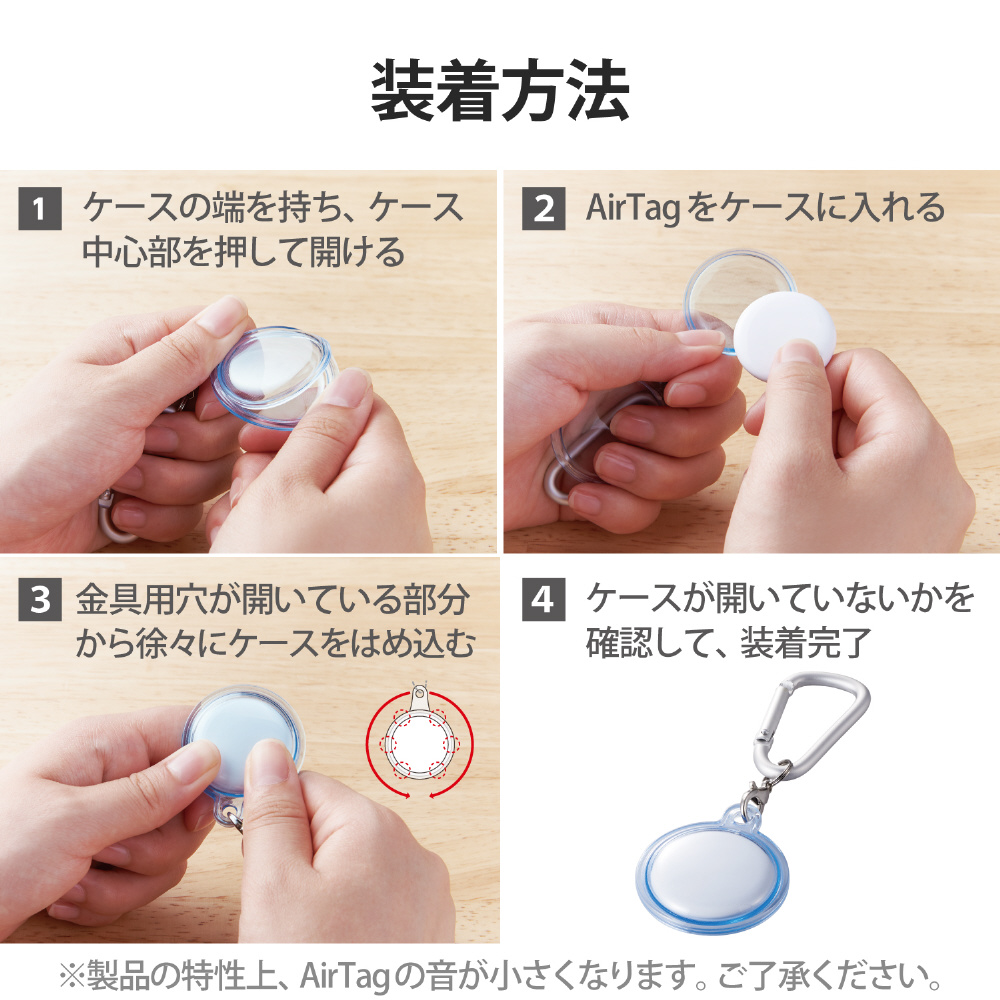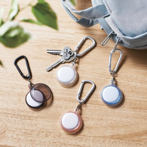 AirTag本体のデザインを損なわずフルカバー構造で全面保護するケースにカラビナが付いたAirTag用ソフトケースです。
