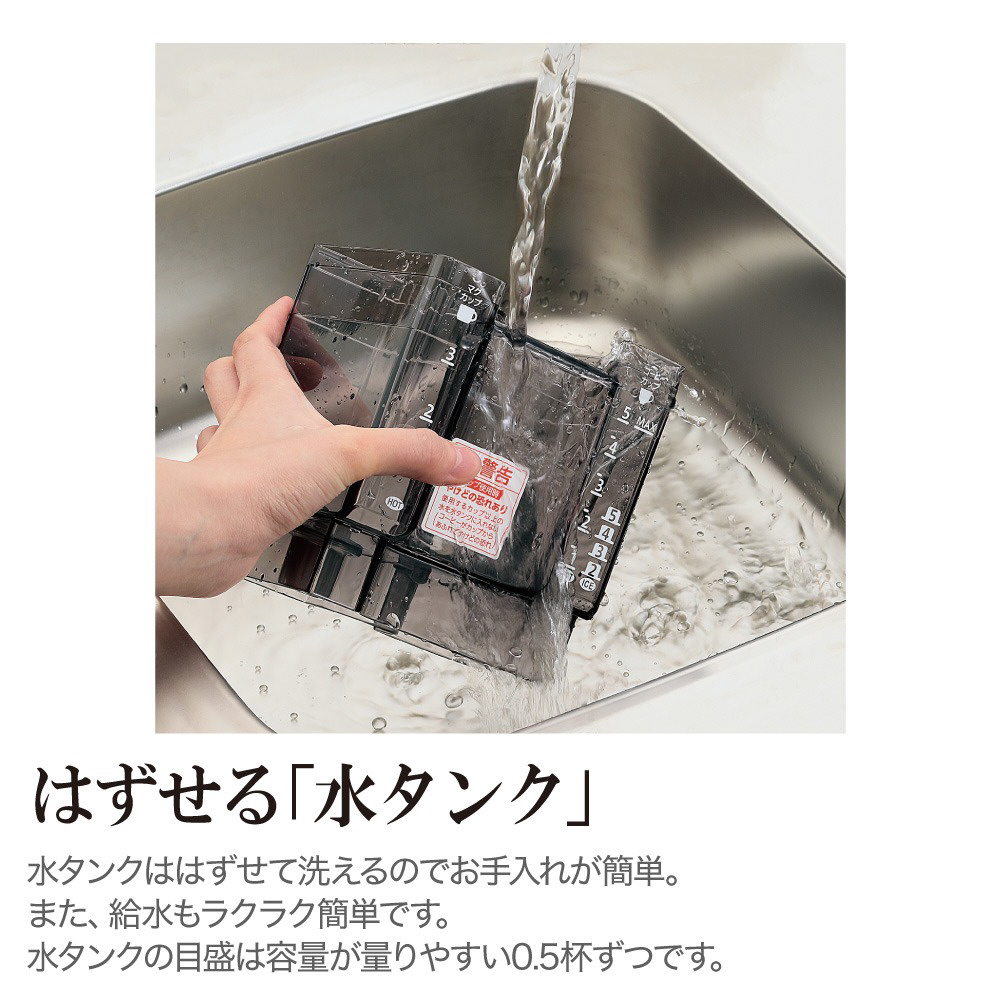 保温性抜群のステンレスサーバーと3段階濃度調節機能付き。