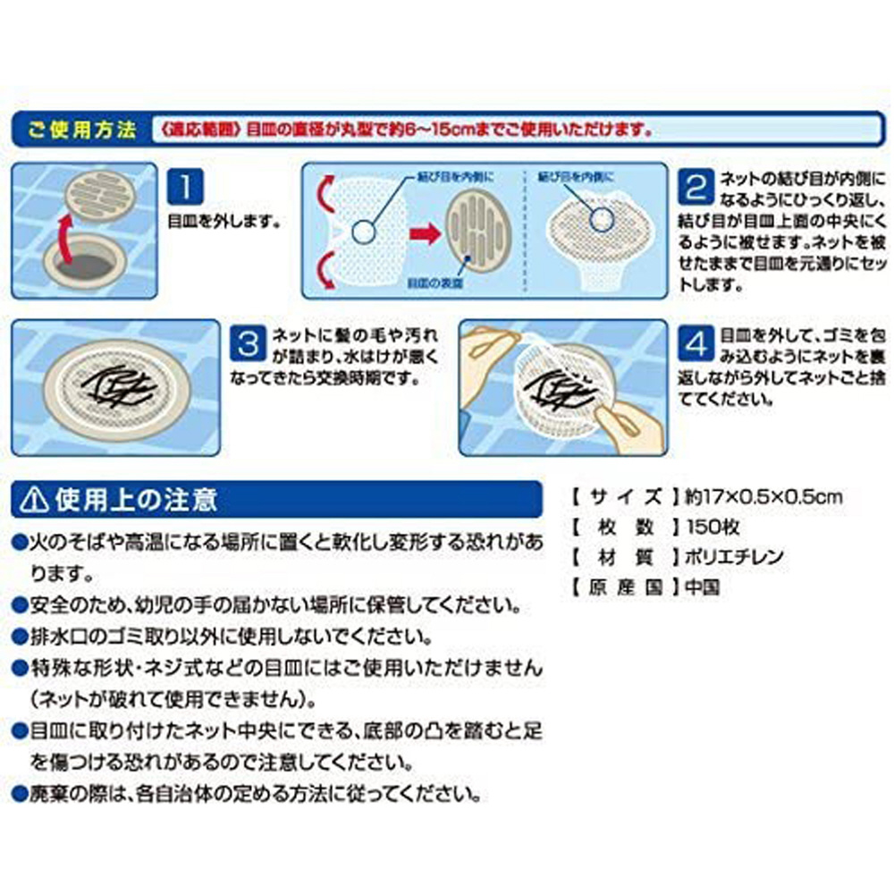 伸縮自在のネットで丸型、角型を問わずにご使用いただける排水口カバー。