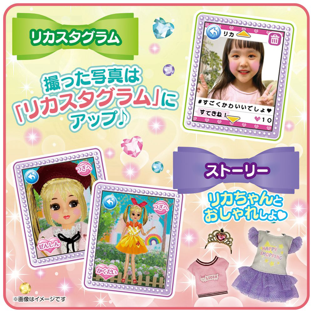作成した画像は本体内の「リカスタグラム」に画像を保存投稿して人気のSNSごっこも楽しめます。