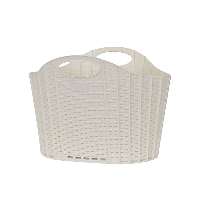 折りたためるランドリーバスケットラタンアイボリー 120412