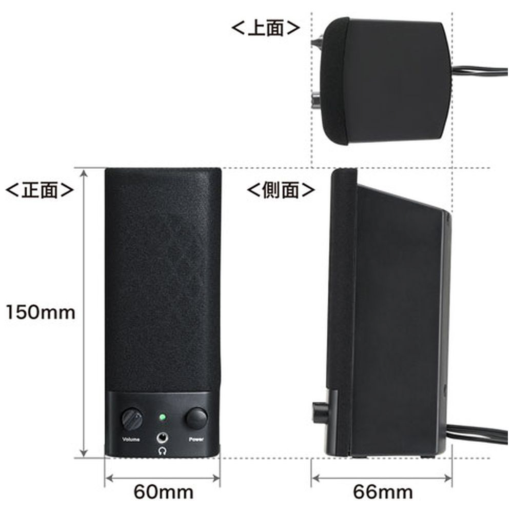 MM-SPL2NU3 PCスピーカー USB-A / 3.5mm接続 ブラック [USB電源]