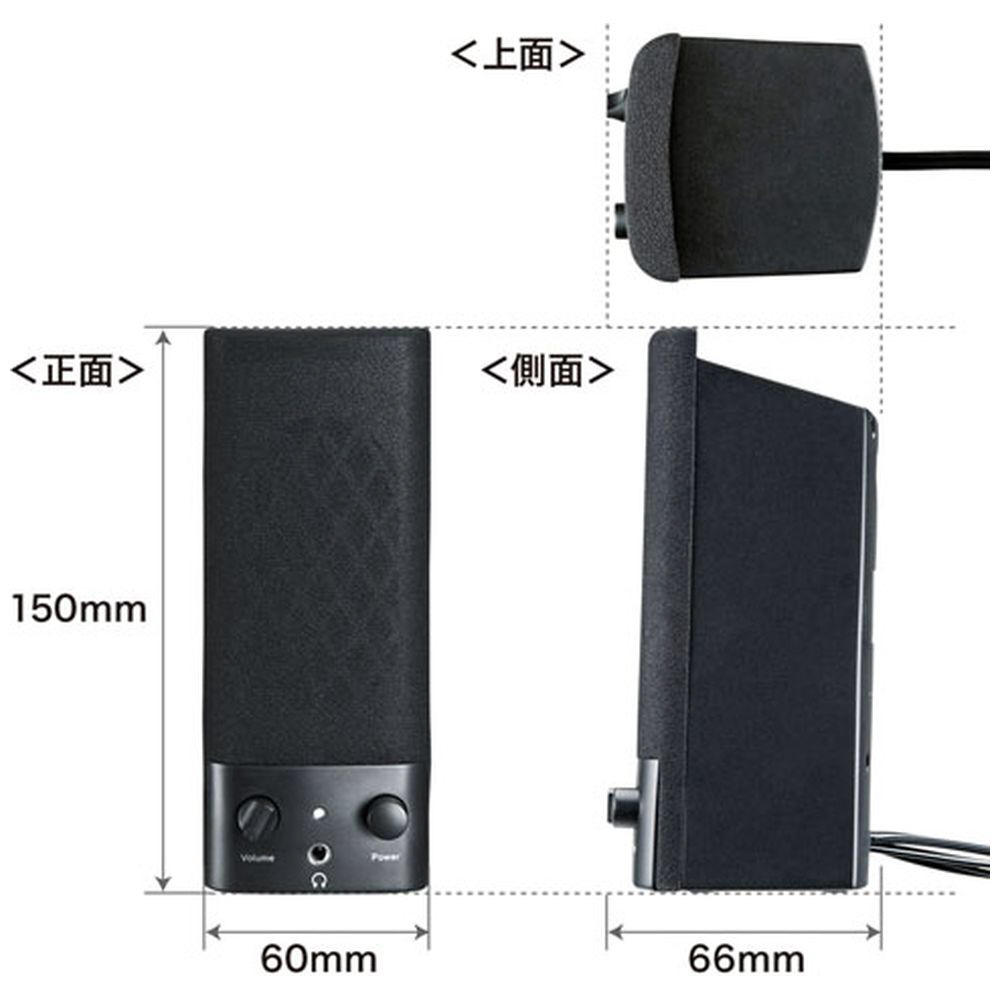 | その他サイズ 1 mm | [ケーブル長] パソコン接続ケーブル/約1.2m スピーカー間ケーブル/約1.0m 電源コード長/約1.2m |