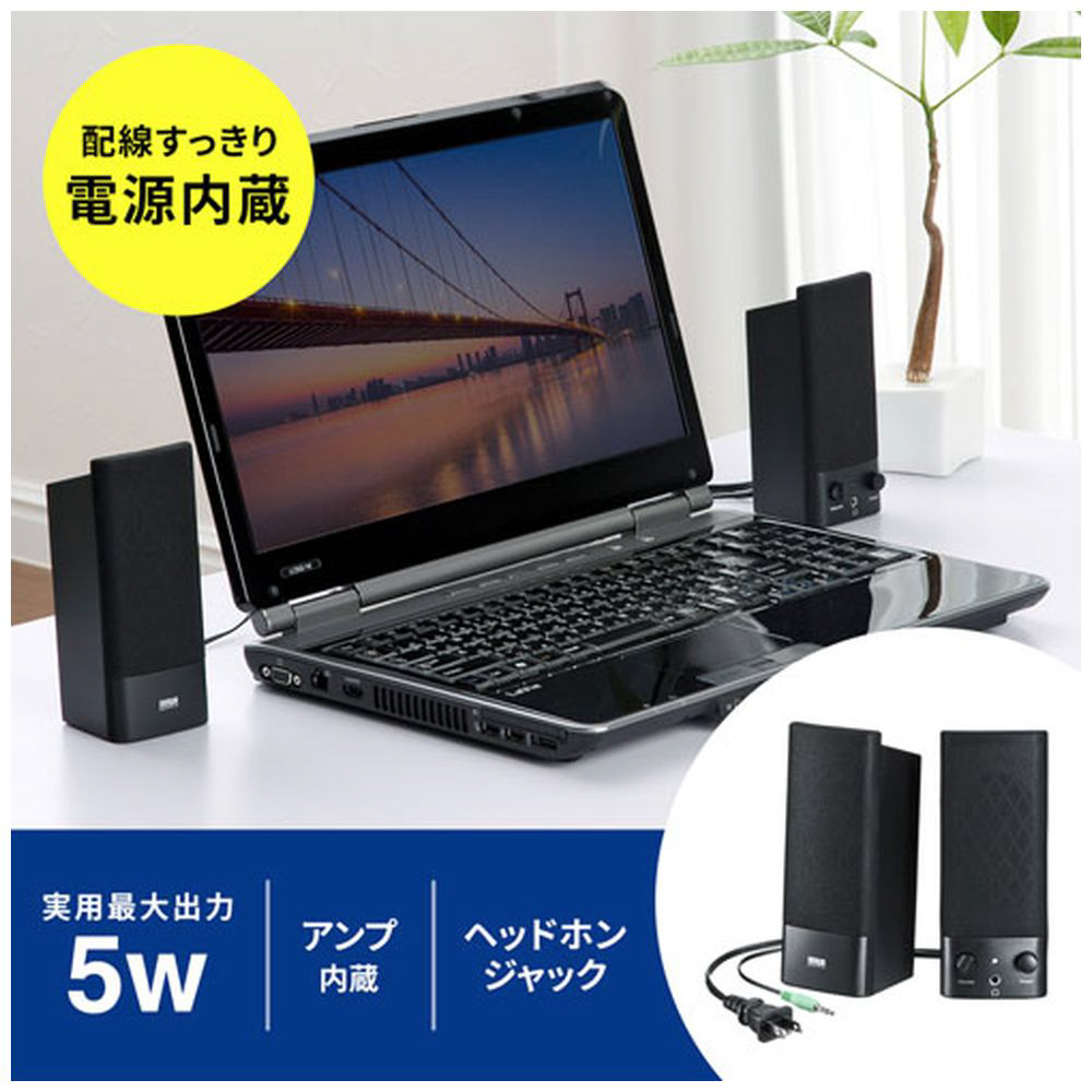 MM-SPL2N3 PCスピーカー 3.5mm接続 ブラック [AC電源 /2.0ch]