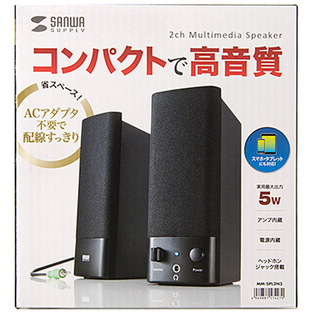 | 商品名 | MM-SPL2N3 PCスピーカー 3.5mm接続 ブラック [AC電源 /2.0ch] |