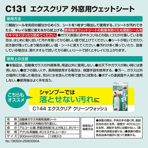 | 商品名 | エクスクリア 外窓用ウェットシート 12枚入り C131 |