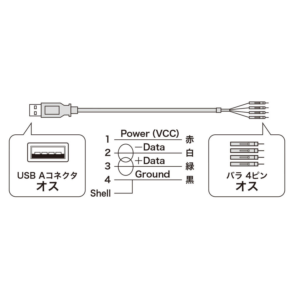 マザーボード用のUSBコネクタを外付用USB Aコネクタオスに変換するケーブル。