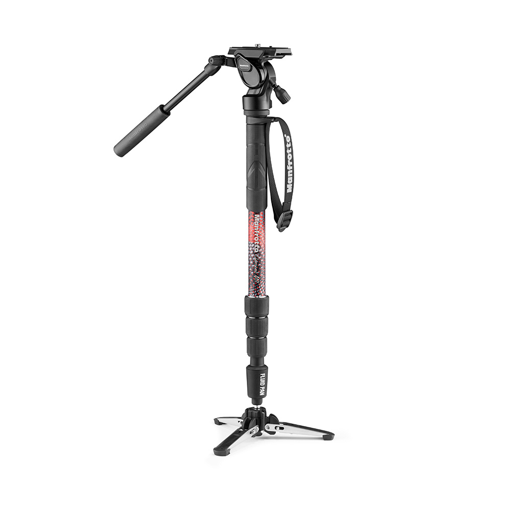 結婚式や企業のPRビデオ、インタビュー、ドキュメンタリーなど、機敏性と緻密性が求められる撮影に最適な、フルードベース・フルード雲台付き一脚