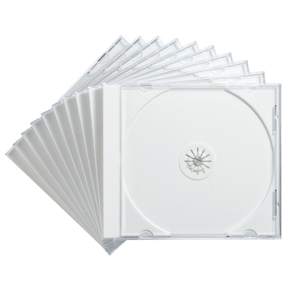 ブルーレイメディア・DVD・CDを1枚収納できる厚さ10mmの一般的な音楽用プラケース。10枚セット。
