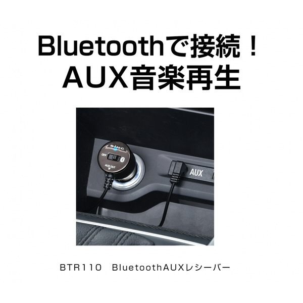 | 商品名 | 車内用品 Bluetooth+AUXレシーバー Bluetooth5.1 12/24V車対応 1m ON/OFF切り替えスイッチ付き BTR110 |