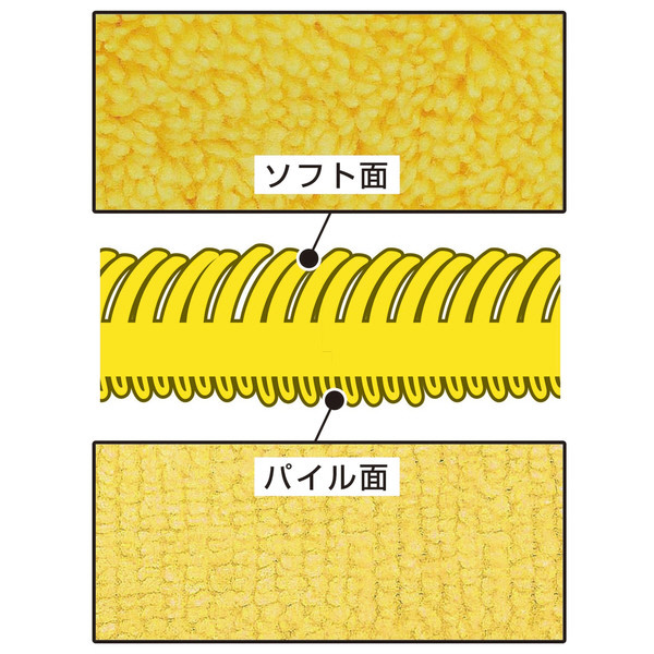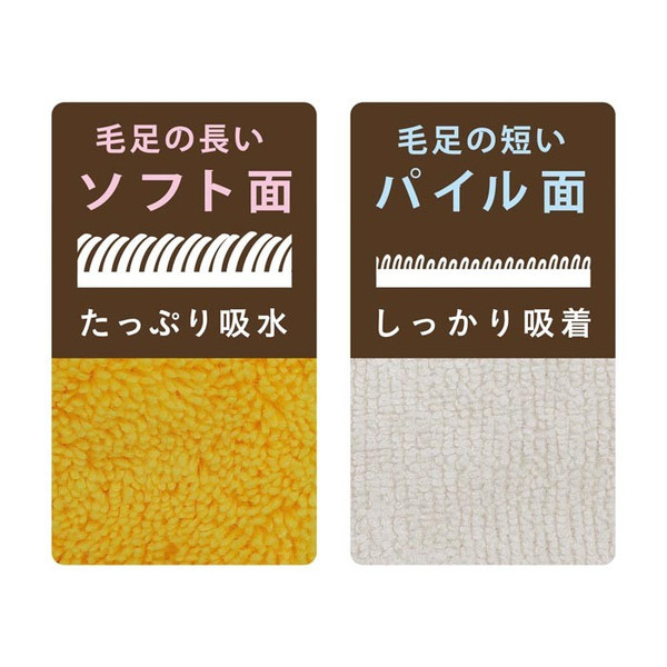 毛足の長さが違うソフト面とパイル面により、濡れた状態・乾いた状態に対応