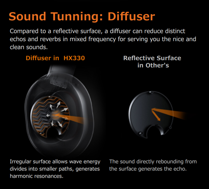 絶縁設定採用9.7 mm大型マイクよりスタジオ品質の入力周波数とクリアサウンドを提供。