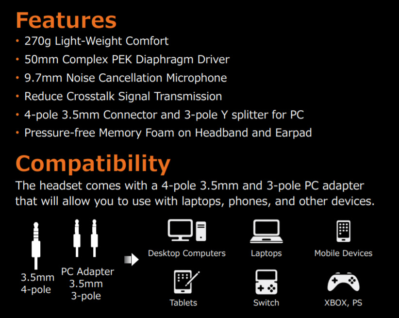 4〜3極アダプタを使用すると、電話機、コンソール、ラップトップ、デスクトップコンピュータ、および3.5 mmオーディオジャックを備えた多くのデバイスと互換性があります。