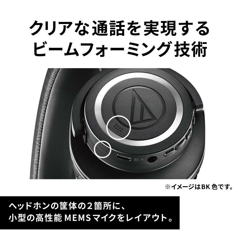 ヘッドホンの筐体の2箇所に、小型の高性能MEMS(Micro Electro Mechanical Systems)マイクをレイアウト。その2 つのマイクを利用したビームフォーミング技術により、周囲の雑音が多い環境にあっても相手に明瞭な声を届けることができます。※話者の口元に向かって指向性を持たせ、声を的確に収音することで通話品質の精度を高めています。