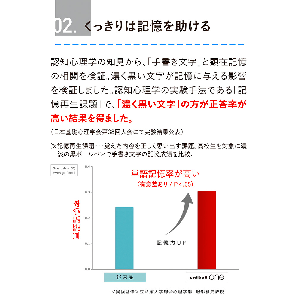 当社と立命館大学との共同研究により、黒色に関して、濃く、くっきりとした文字ほど記憶に残りやすいことがわかりました。