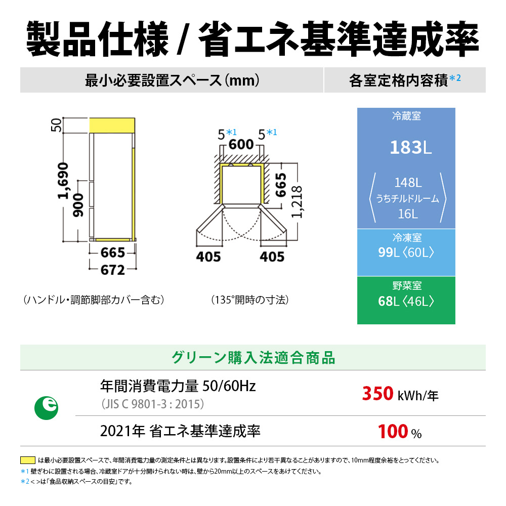 | 冷蔵室容量 | 183L |
