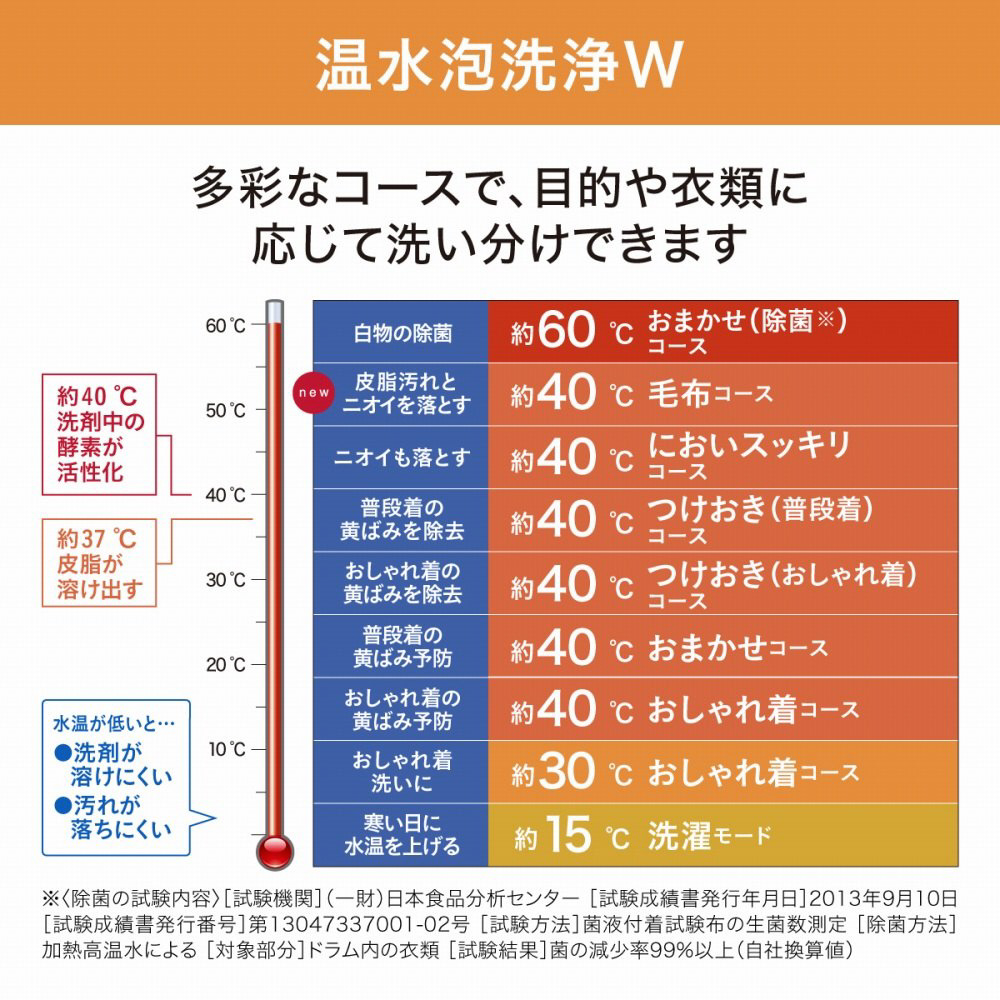 泡と温水の力で黄ばみやニオイまでスッキリ「温水泡洗浄W」