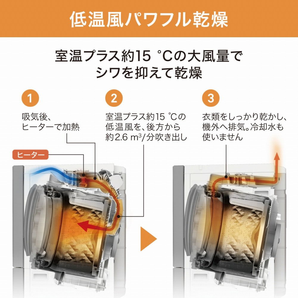衣類にやさしい低温のヒーター乾燥「低温風パワフル乾燥」(ヒーター排気式)