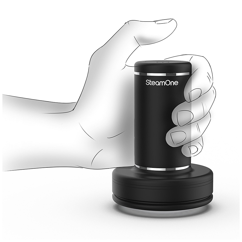 SteamOneオリジナルの洗練されたデザイン。握ったまま親指でON/OFFができ、軽量でコンパクトなサイズは長時間使用しても疲れない。