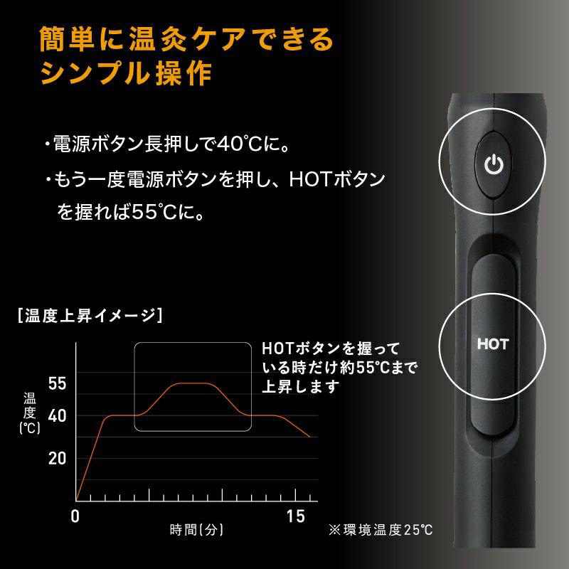 最大55℃で筋肉の疲れをとり、コリをほぐす。