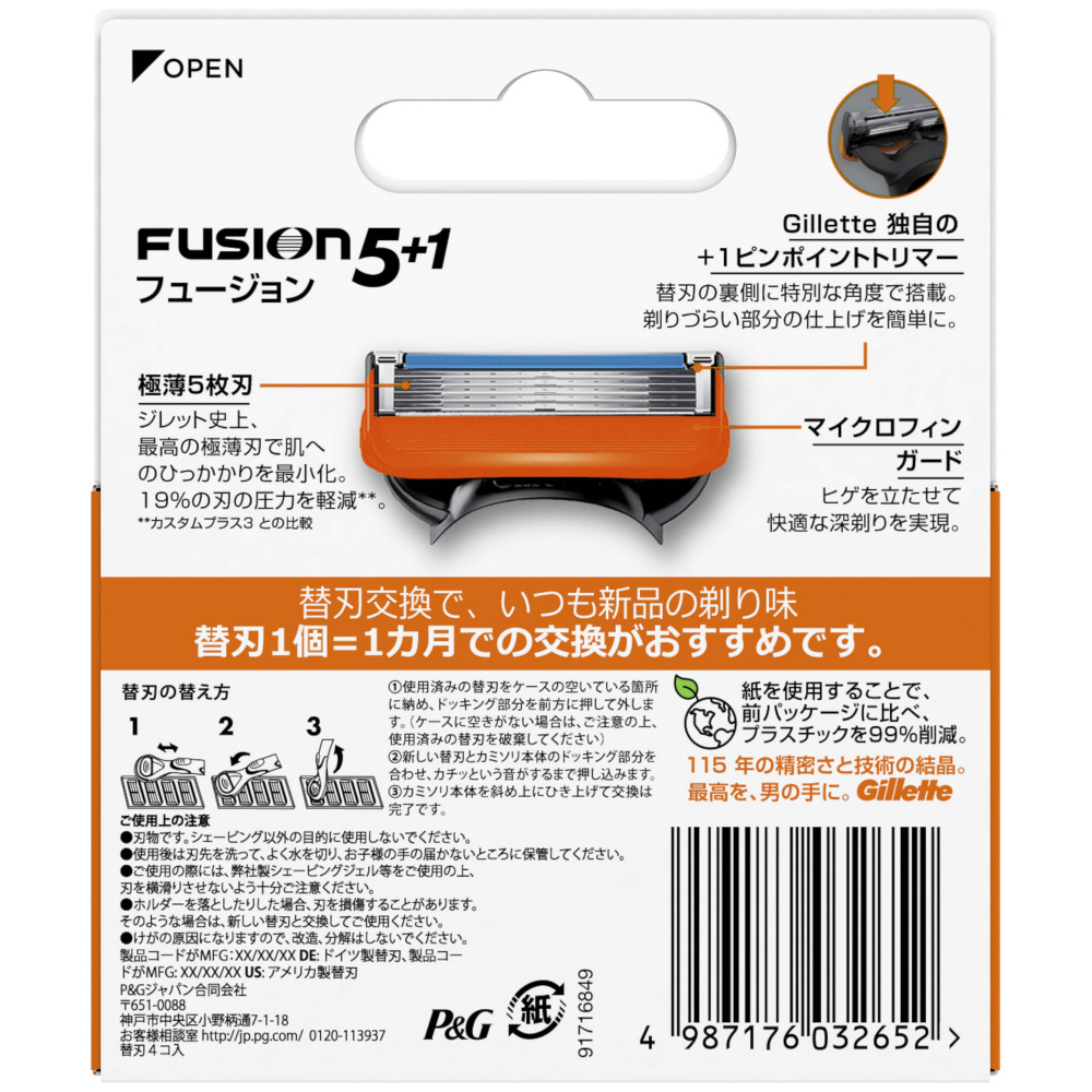 | 商品名 | Gillette(ジレット)フュージョンマニュアル替刃4個入 |