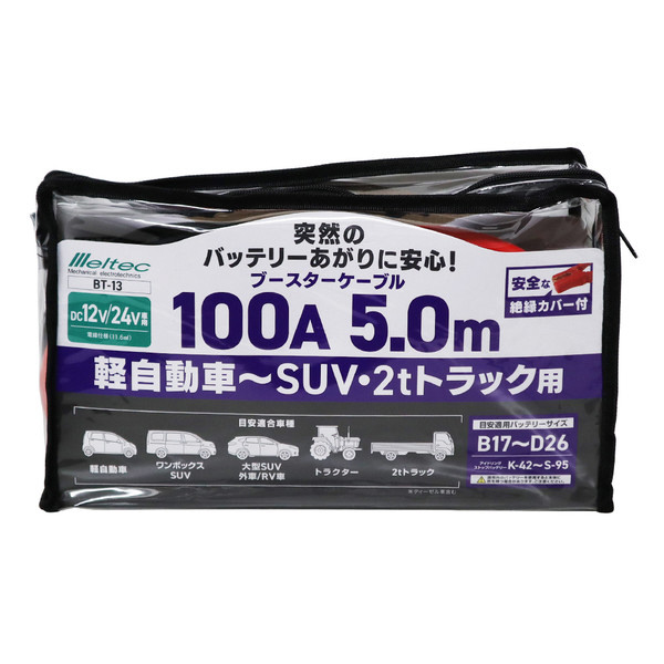 | 商品名 | ブースターケーブル ディーゼル車〜小型トラック用 DC12V/24V・100A 5m BT-13 |