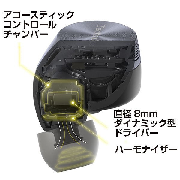 ドライバーの広帯域再生能力を引き出す独自の音響構造「アコースティックコントロールチャンバー」に加え、高域特性を改善する「ハーモナイザー」を新たに採用。