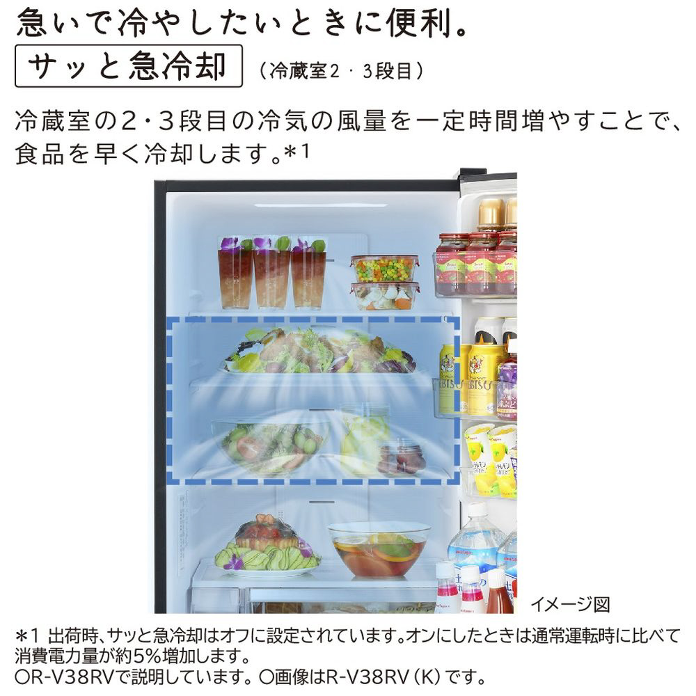 | 商品名 | 【基本設置料金セット】 冷蔵庫 Vタイプ ブリリアントブラック R-V38RV-K [3ドア /右開きタイプ /375L] |