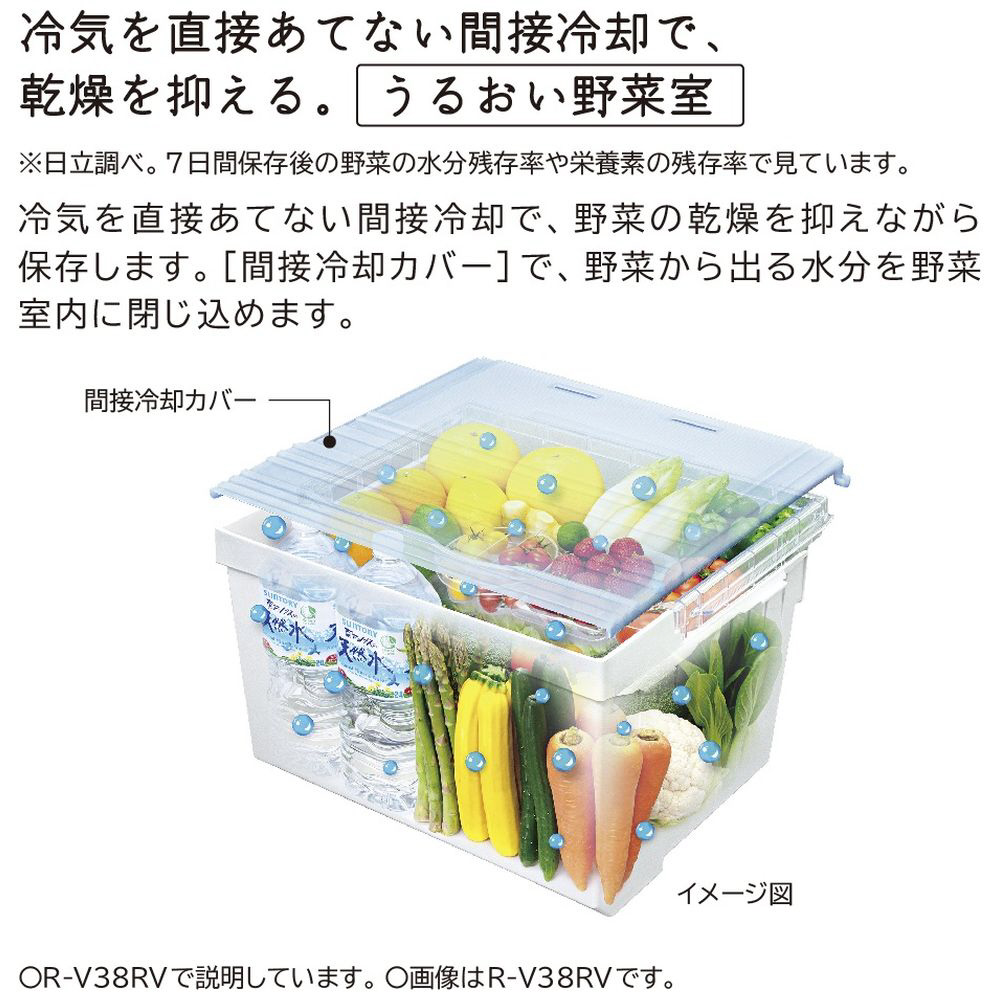 冷気を直接当てない間接冷却で、野菜の乾燥を抑えます。※日立調べ。