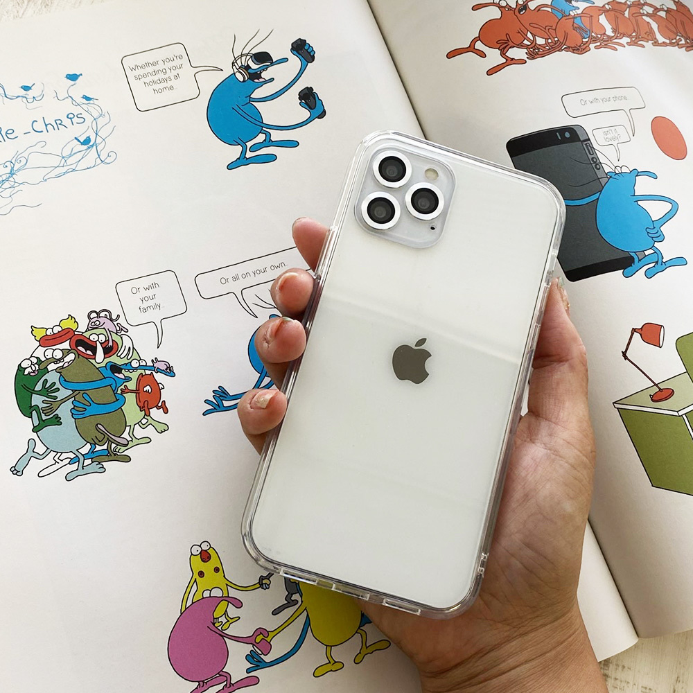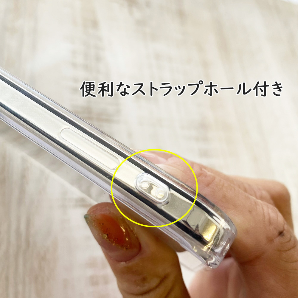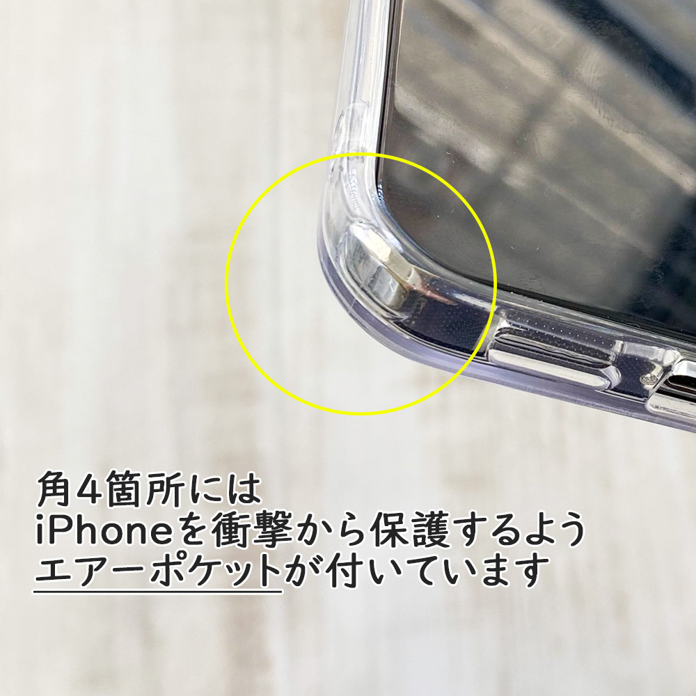 背面PC×サイド部分TPUのハイブリッドクリアケースです。背面は高い衝撃性のあるPC、側面は柔らかいTPU素材を使用しています。