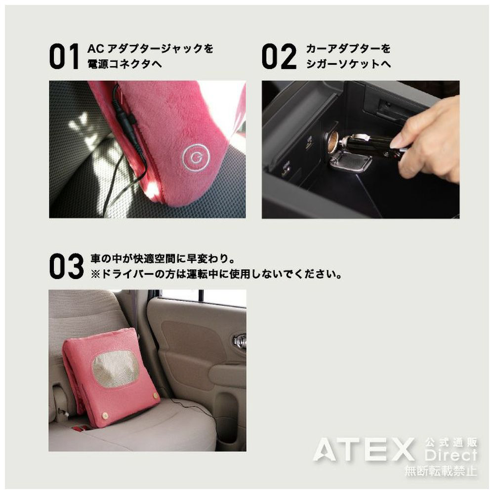 カーアダプターを車のシガーソケットに接続してマッサージできます。