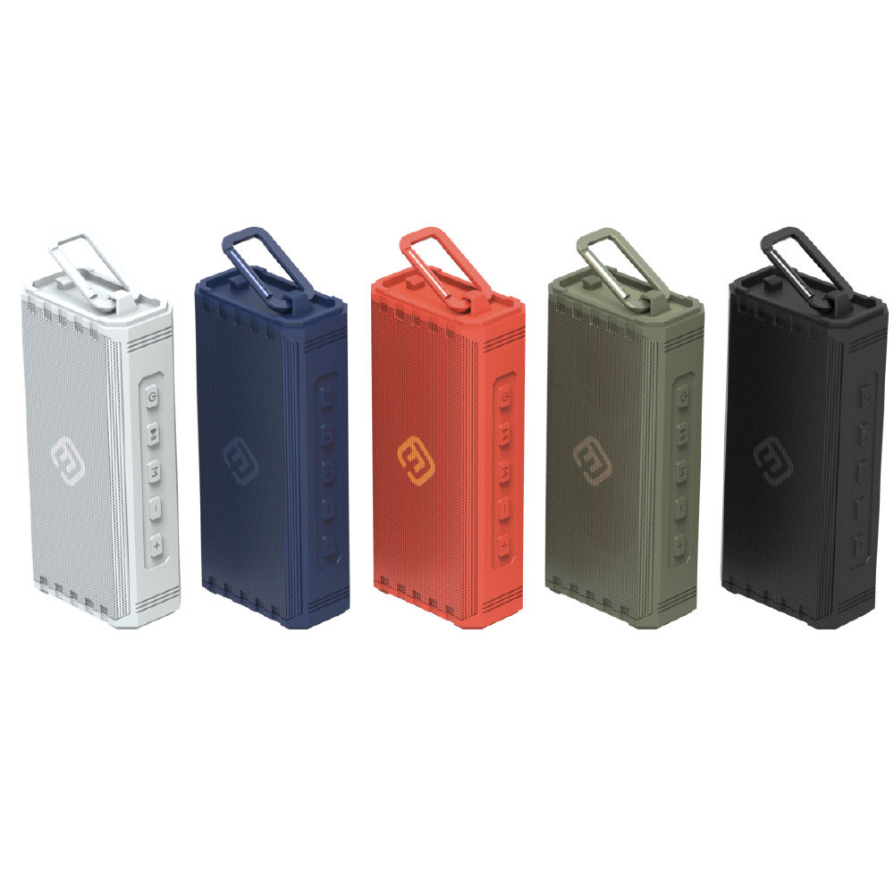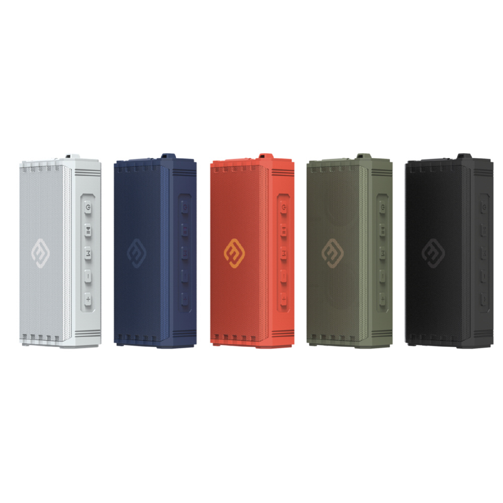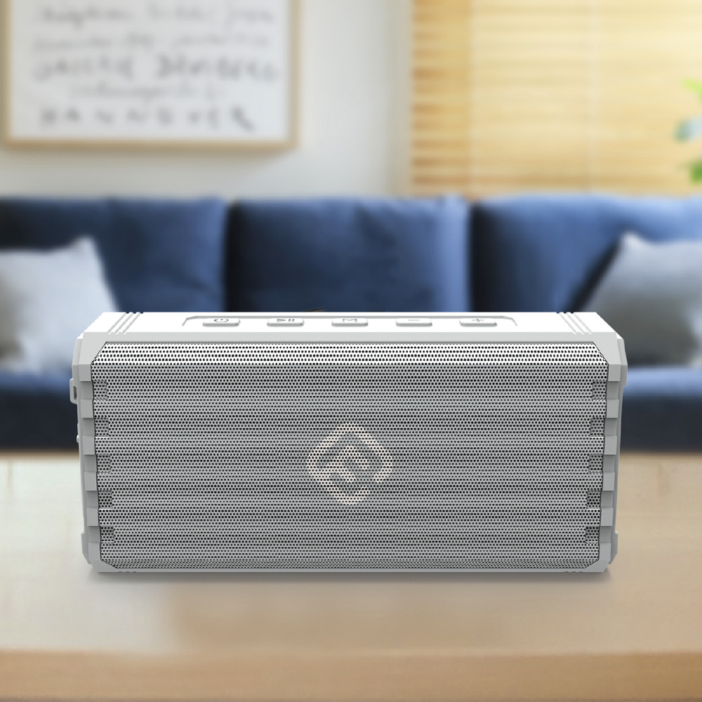 場所を選ばず使える、シンプルでおしゃれな直方体の形状。お好みに応じて5色カラーバリエーションから選択頂けます。防水仕様ですので、室内はもちろんのこと、屋内のキッチン、お風呂、洗面所などの水回りでも使え、持ち運び用として移動する車での車載用として、あるいは庭でのホームパーティー利用に、どんなシーンにもおすすめできる、飽きのこないデザインです。
