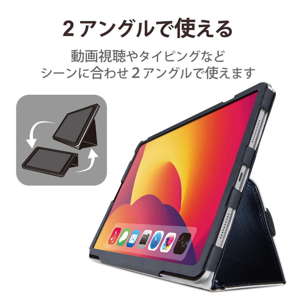 動画視聴やタイピングなどシーンに合わせて2アングルにできるスタンドと、ペンホルダを装備した軽量設計のiPad mini 第6世代(2021年モデル)用ソフトレザーケースです。