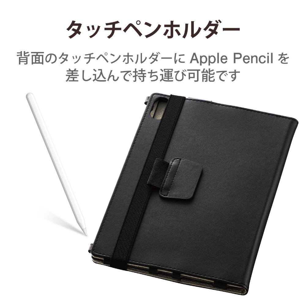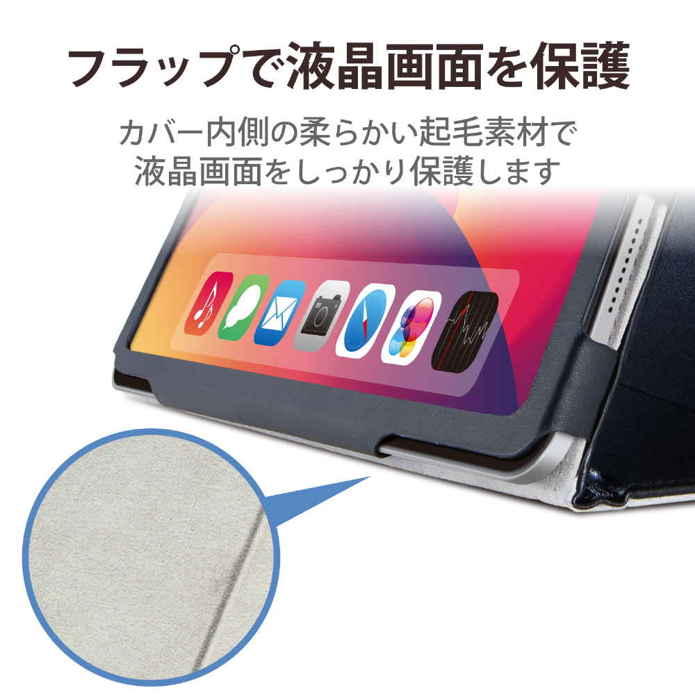 iPad mini(第6世代)用 フラップ ソフトレザーケース 手帳型/2アングル/軽量 ブラック TB-A21SPLFBK