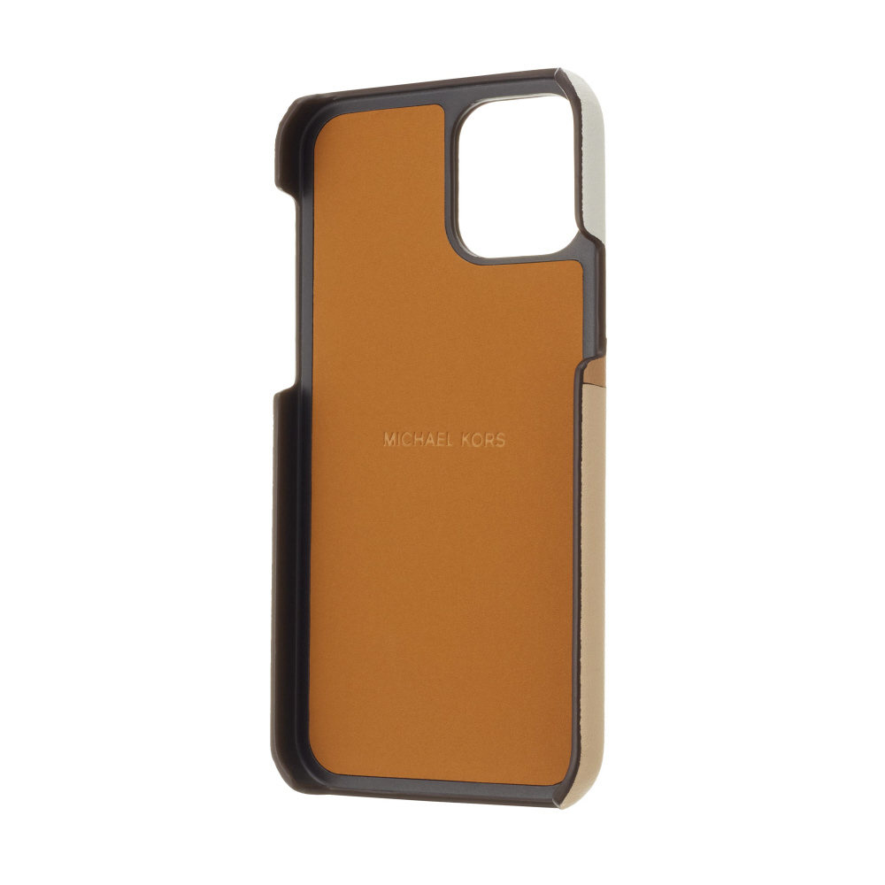 スタイリッシュな3段カラーに立体仕様のレターロゴとMKサークルロゴをあしらった実用性とデザイン性を兼ね備えたポケット付き背面ケース。