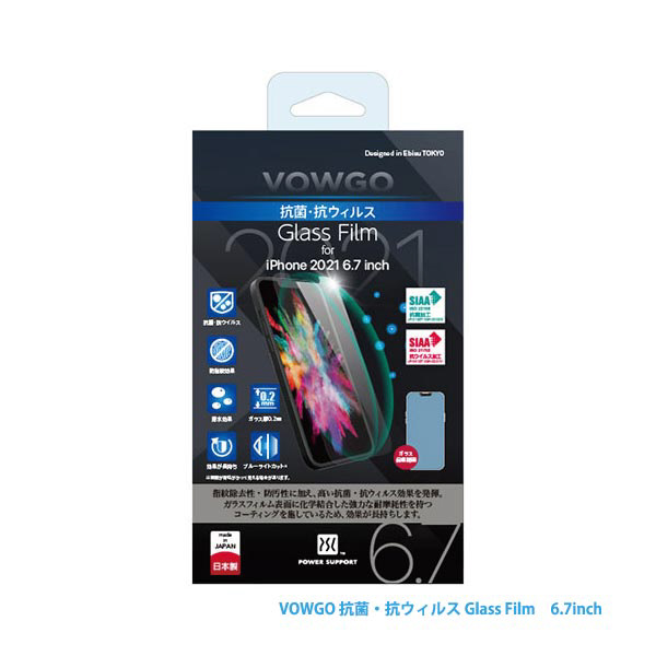 iPhone 13 Pro Max対応 6.7inch VOWGO 抗菌・抗ウィルス ガラスフィルム