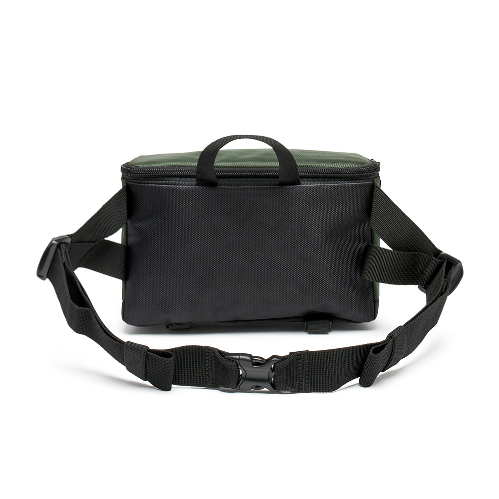 ミラーレスカメラと交換レンズを収納できるウエストバッグ