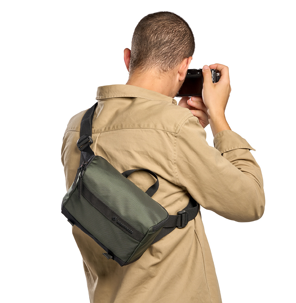 「●使い方次第でウエストバッグにもスリングバッグにも。クイックリリースバックルを備えたストラップは4cmの幅広で、斜め掛けにすればスリングバッグとして使用することも可能です。」