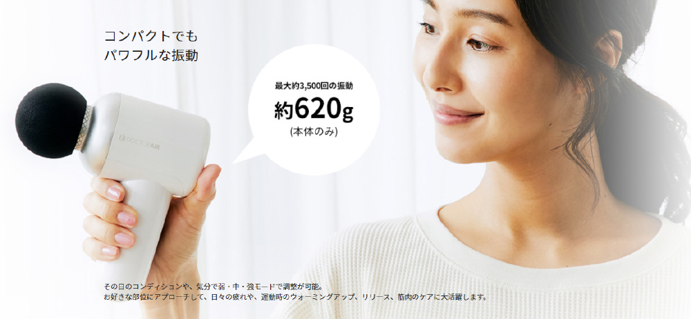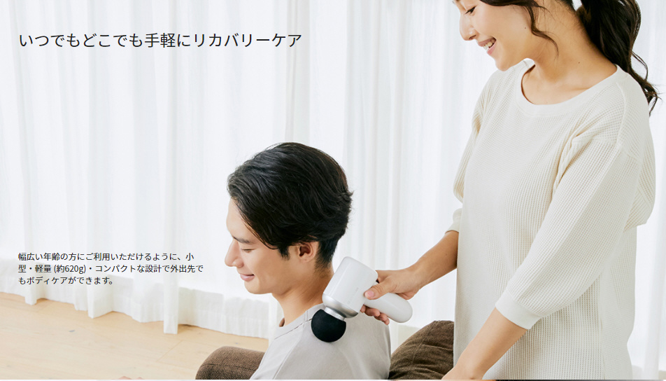 幅広い年齢の方ご利用いただけるように、小型・軽量 (約620g)・コンパクトな設計で外出先でもボディケアができます。